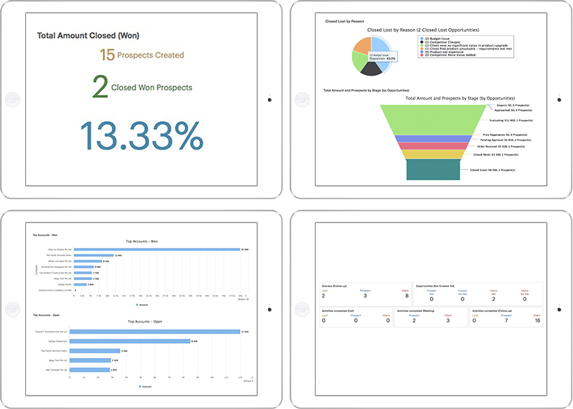 Cơ chế theo dõi được xây dựng trong CRM Crystal Dash này nhằm giúp công ty của bạn đơn giản hóa các quy trình bán hàng. Thay vì thực hiện quy trình kinh doanh không có hệ thống với bảng báo cáo tiến độ và các báo cáo khác được xây dựng sẵn, chúng tôi có thể xác định được quy trình bán hàng.