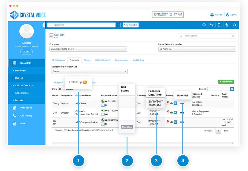 Làm thế nào Crystal Dash CRM có thể giúp công ty của bạn ngay ngày hôm nay. Trao đổi với chuyên gia tư vấn thân thiện của chúng tôi tại +65 6727 8111