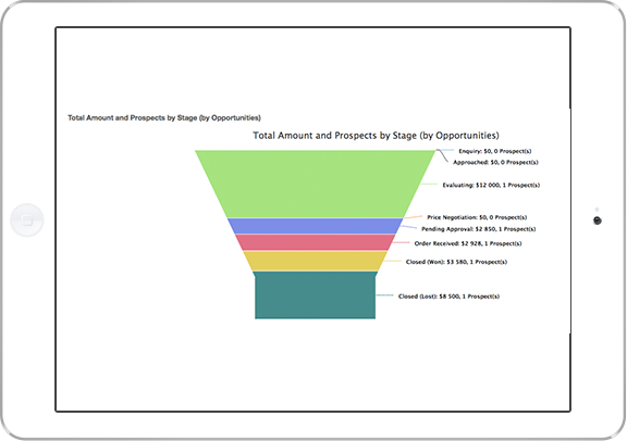 Biểu đồ lọc này cho phép xem tất cả các tiềm năng thành công trong quy trình bán hàng, nó có thể được phân tách dựa trên từng cá nhân cũng như ở cấp độ cả công ty. Dự báo kinh doanh sẽ được thực hiện dễ dàng hơn vì bây giờ chúng tôi có thể dự báo được số giao dịch có thể thành công trong quý tới.